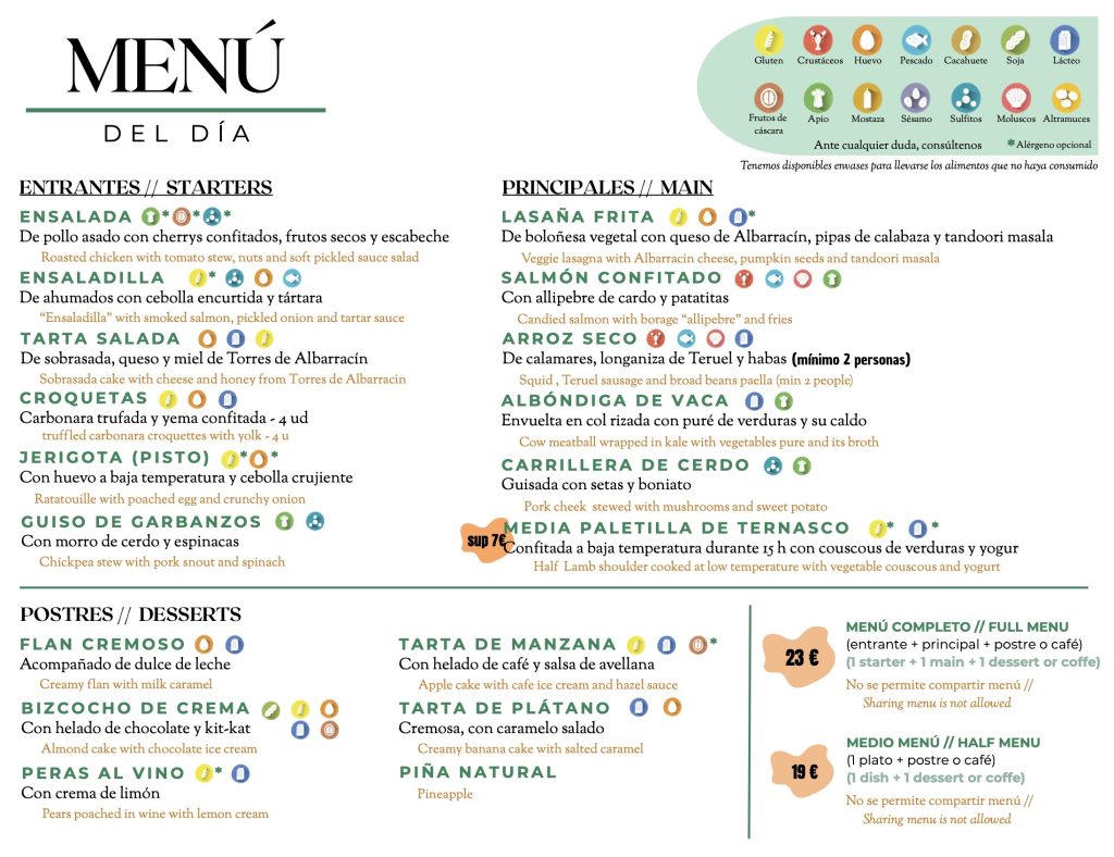 PARA COMER En Restaurante La Peculiar, durante el servicio de comidas ofrecemos el menú del día que actualizamos cada mes.